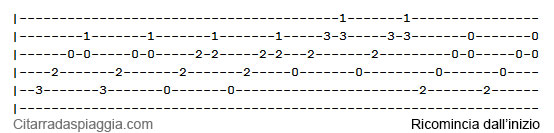 La tab dell'arpeggio da ripetere per 3 volte: